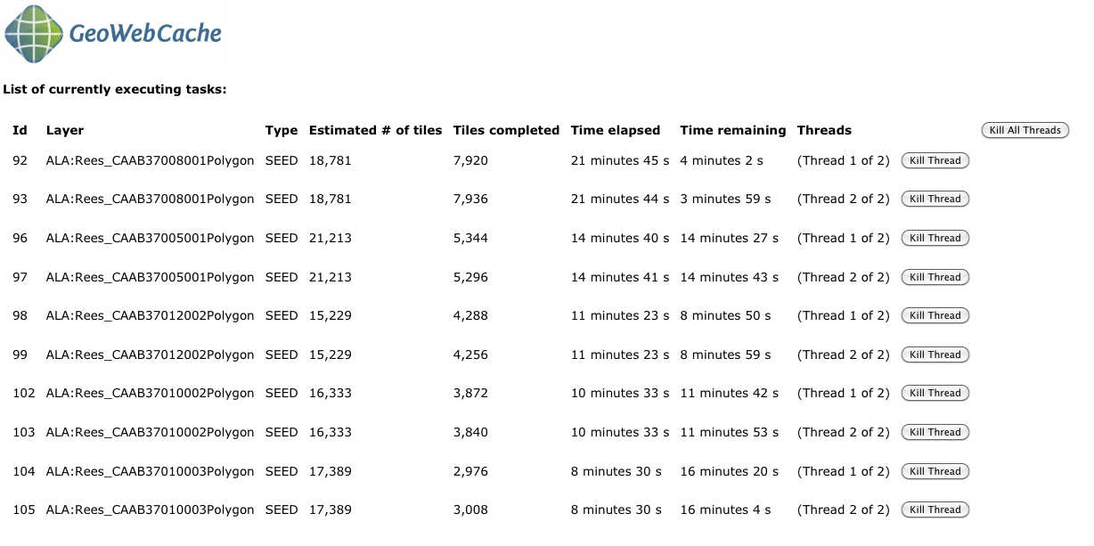 After you initiate the preseed jobs, you can jump back into the GWC tile creation page to get an idea of the status.